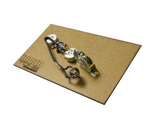 Description At one point or another, it is essential for any guitarist to upgrade or replace the electronics in their guitar. Each component is just as important as the next, which is why Mojotone has created a pre-wired assembly with the highest quality components on the market. Bring guitar to life with our smooth custom taper CTS potentiometers and creamy sounding paper and oil Vitamin T capacitors for a vast improvement over stock electronics. The 4-way Fender Tele mod kit uses a custom 4-way switch to give a fat series humbucker tone in the 4th position while retaining the standard Tele switching functions in the other 3 positions. Use 1/4'' diameter set screw knobs for the solid shaft pots. Included: -Mojotone custom CTS 250k solid shaft potentiometers -Oak Grigsby 4-way switch -Switchcraft mono input jack -Mojotone Vitamin T Paper & Oil .047uf capacitor -Pre-tinned cloth covered wire -Volume mod (Treble Bleed)-Wiring DiagramSwitch Positions: 1. Bridge 2. Bridge & Neck in Parallel 3. Neck 4. Bridge & Neck in Series (Fat Humbucker Tone) Estimated shipping dimensions: 7.25INCH X 2.65INCH X 10.1INCH Estimated shippimg weight: 0.62POUND