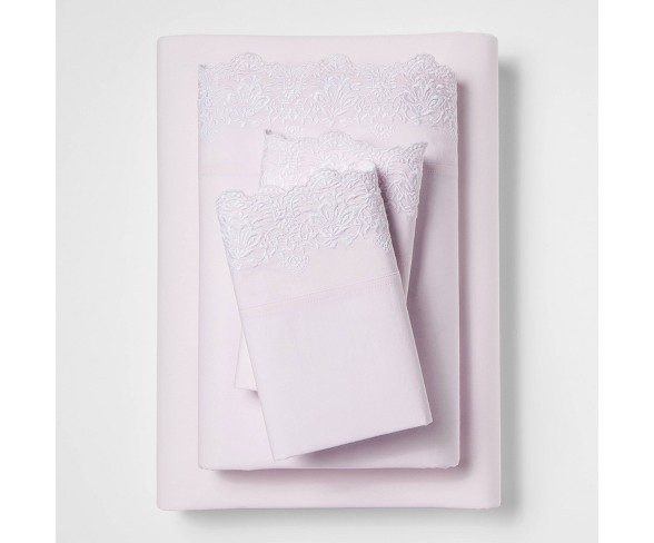 Description We’re committed to making products better for you, and the world. This product is Standard 100 by OEKO-TEX certified, meaning that everything from the dyes and fabrics to accessories like buttons and zippers are tested and verified as free from harmful levels of more than 300 substances.Fits Mattress Depth: Up to 18"Number of Pieces: 4Includes: 1 Fitted Sheet, 1 Flat Sheet, 2 PillowcasesPiece 1 Type: Flat sheet, Quantity: 1Piece 1 Dimensions: 94 inches (W) x 104 inches (L)Piece 2 Type: Fitted sheet, Quantity: 1Piece 2 Dimensions: 60 inches (W) x 80 inches (L)Piece 3 Type: Pillow case, Quantity: 2Piece 3 Dimensions: 20 inches (W) x 32 inches (L)Textile Material: 100% CottonStyle: Sheet setsSheet Features: Double needle stitching, double turned hems, embroidered detailsPattern: Embroidered patternFeatures: Mercerized finish, Sanforizing, SoftnerTextile construction: PoplinOeko-Tex standard 100 certification number: 11-25127Sustainability Certifications: Oeko-Tex standard 100 certifiedMaterial: Textile Percentage 2: 0Thread Count: 250Care and Cleaning: Machine wash & Tumble dry Estimated shipping dimensions: 8.0INCH X 4.25INCH X 10.0INCH DPCI : 062-19-0315 UPC : 490621903154 TCIN : 54158239 Estimated shippimg weight: 4.31POUND