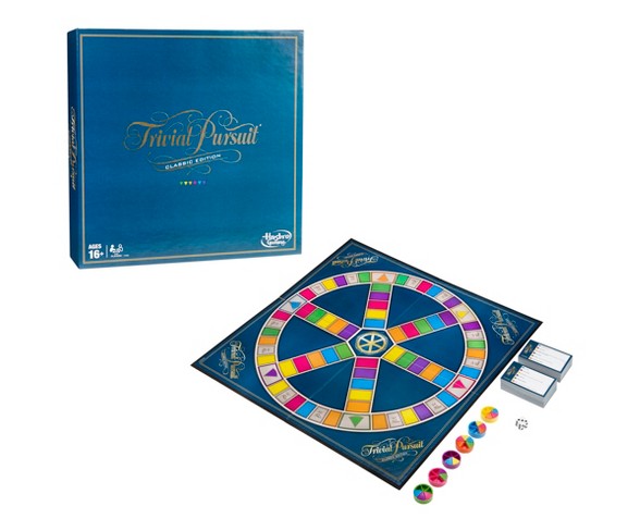 Description A major throwback to the classic trivia board game that started it all! A great game to play with the friends & family, this version of Trivial Pursuit features The Classic Edition of the board game.It includes the all too familiar classic gameplay that we've grown to love and understand. Each player tries their best to get the question right, in order to move ahead and progress on the board. When a player lands on a category space, they'll earn the corresponding colored wedge if they answer the question correctly. The first player to collect 6 different colored wedges and answer a final question correctly wins!This edition of Trivial Pursuit contains 2,400 questions in 6 categories: Geography, Entertainment, History, Art and Literature, Science and Nature, and Sports and Leisure.Suggested Age: 16 Years and UpMaterial: Vinyl, paperType of Game: Classic gamesPlaying Time: 30-60 MinutesIncludes: Instructions, game piecesLevel of Difficulty: IntermediateCPSC Choking Hazard Warnings: Choking_hazard_small_partsNumber of Players: 2 or More PlayersPackage type: Full gameType of Game: Classic gamesPlaying Time: 30-60 MinutesIncludes: Game pieces, instructions, gameboard, 400 cards, 1 dice, 6 wedge holders & 36 wedgesLevel of Difficulty: IntermediateSuggested Age: 16 Years and UpNumber of Players: 2 or More Players Estimated shipping dimensions: 10.6299INCH X 2.5984INCH X 10.5512INCH DPCI : 087-10-3489 UPC : 630509534081 TCIN : 52120063 Estimated shippimg weight: 2.2928POUND