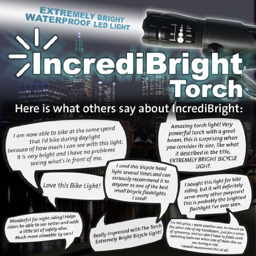 Here is what people are saying about The Torch... "This little light packs a punch" "All I can say is WOW!" "I cannot believe just how bright this light is!" Experience for yourself the features everyone is raving about - Quickly attaches to your bike frame with no tools required - 2000 X Zoom Lens - Range up to 500 FT -Water resistant with an IP65 rating -Tactical rating for brightness Ride in confidence with The Torch. This extremely bright bike headlight increases your visibility on the road allowing cars, pedestrians, and other bicyclists to see you coming. It will also light up your path allowing you to better navigate around obstacles. Never get caught in the dark again! As a sincere Thank You for your purchase, we are now including a free tail light with every Torch! We stand behind our product 100%, if you're not satisfied, neither are we. We will refund or replace your Torch no questions asked, no headaches. Add to cart now, stock is limited. Get yours today!