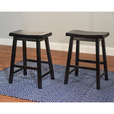 Description The TMS Black Belfast Saddle 24"H Wood Stools (20324BLK PR) feature a scooped seat for adequate comfort. Accent your dual-seated dining table with the TMS Saddle Stools. Made of solid rubber wood and pine, these black saddle bar stools feature a Scandinavian saddle design that complements any modern or traditional decor. These stools have long and sleek wo oden legs for sturdy support. Black stools come in a set of 2 Dimensions: 24"H x 17.75"W x 13.25"D; 24"H (Max seat height) Solid rubber wood and pine construction lends it sturdiness and durability Backless stool with footrest for added leg support Scooped seat for extra comfort ⚠ WARNING: This product can expose you to chemicals including wood dust, which is known to the State of California to cause cancer. For more information go to www.P65Warnings.ca.gov/furniture Specifications Upholstery : None Weight (lbs.) : 17 Furnishing Color : Black Furnishing Style : Traditional True Color : Black Height in Inches : 24 Width in Inches : 17.75 Depth in Inches : 13.25 Arm Design : Armless Assembly Information : Assembly required Bar Stool Features : Swiveling Base Pieces in Set : 2 Seat Height in Inches : 24 Bar Stool Back Type : Backless Brand : Target Marketing Customizable : No Weight : 19.00 lbs. per Pack