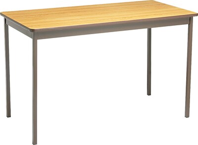 Description Barricks Utility Table expands your work area and creates space for fax machine, small copier or even the coffee maker. It comes with a non-folding design that stands up to long-term use. Special finish on the frame helps reduce scratches. A quick and easy way to expand your work area! Economically priced utility table features 3/4" wood grain laminate top. Assembly required. 30"H x 48"W x 24"D Holds up to 500 lbs. evenly distributed Oak finish top, brown finish legs An easy way to expand your work area Economically priced table with 3/4" woodgrain laminate top Stable nonfolding 1" square steel legs with plastic glides Enamel finish on 2-1/4" apron and legs Ready to assemble 5 year limited warranty Seats 1-2 people WARNING: This product can expose you to Formaldehyde (gas), which is known to the State of California to cause Cancer. For more information go to www.P65Warnings.ca.gov. Specifications Furnishing Color : Oak True Color : Oak Drafting & Specialty Table Type : Utility Brand : Barricks Customizable : No Weight : 39.00 lbs. per Each