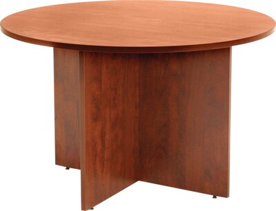 Description Regency Legacy round conference table measuring 29" x 42" Dia has thermally fused melamine lamination with a 3 mm matching PVC edge that prevents moisture absorption and comes in an elegant cherry finishing. Legacy's round table is the perfect accent to private offices, conference suites, common areas, waiting rooms and more! Round conference table Dimensions: 29"H x 42" diameter Constructed of a thermal fused melamine laminate - cherry finish Meets or exceeds ANSI/BIFMA standards Ready to assemble 10-year mfr. limited warranty Legacy's round table is the perfect accent to private offices, conference suites, common areas, waiting rooms and more! It has a solid wood X style interlocking base, spacious 42-inch top and seats 2 to 4 people. Adjustable glides on the bottom of the base keep the tabletop level and are easy to adjust. Durable and professional, the Legacy collection is the epitome of transitional furniture. An attractive Cherry laminate finish looks great in any office. The Legacy collection is constructed of a 1-inch thick thermal fused melamine laminate with a 3-millimeter commercial grade matching PVC edge. Laminates are scratch, stain and scald resistant. Legacy casegoods are backed by a 10-year limited manufacturer's warranty. Specifications Table Shape : Round Weight (lbs.) : 74 Warranty Information : 10 Year Capacity (lbs.) : 250 Furnishing Color : Cherry Furnishing Style : Modern Furnishing Material : Laminate True Color : Cherry Height in Inches : 29 Width in Inches : 42 Series or Collection : LEGACY Table Certifications : ANSI/BIFMA Depth in Inches : 42 Length in Inches : 42 Max Number of Seats : 4 Reception Table & Accessory Type : Console Tables Brand : Regency Customizable : No Weight : 75.00 lbs. per Each