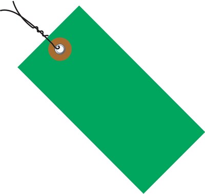 Description Green 5 1/4" pre-wired shipping tag are made from spunbonded olefin. Tyvek® 5 1/4" x 2 5/8" Pre-wired shipping tag in green color is made from chemical and mildew resistant spunbonded olefin for durability. Tag featuring a 3/16" metal eyelet for added strength is pre-wired with 26 ga double wire of 12". Green Length: 5 1/4" Tags feature a 3/16" metal eyelet Chemical and mildew resistant Tags are made from spunbonded olefin Pre-wired with 12" - 26 gauge double wire Dimensions: 5 1/4"(L) x 2 5/8"(W) Specifications Color Family : Green Tyvek Shipping Tags Case Quantity : 100 Tyvek Shipping Tags Color : Green Tyvek Shipping Tags Length : 5-1/4 Tyvek Shipping Tags Width : 2-5/8 Shipping Tag & Seal Type : Pre-Wired Brand : Tyvek Customizable : No Weight : 0.36 lbs. per Carton