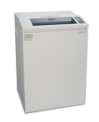 Description Formax® Cross-cut office shredder can shred up to 35 - 37 sheets with speeds up to 22 fpm and is designed to be as compact as a wastebasket as well as powerful to handle any office job. Formax® Cross-cut office shredder with 16" feed opening includes an optical sensor to detect paper and has reverse mode to release jammed paper. 22 fpm Shredder stops automatically when bin is full/cabinet door is open or if it gets overheated. Sheet capacity: 35 to 37 Cutting style: Cross-cut Shred size: 0.156" x 1.2" Speed: 22 fpm Feed opening: 16", bin capacity: 33 gal Dimensions: 35"(H) x 24"(W) x 20"(D) Security level: Level 3 (HIPAA Compliant) Power supply: 110V, 50/60 Hz Auto start/auto stop: Optical sensor detects paper and starts operation automatically, LED control panel with load indicator Door safety sensor: Motor stops automatically if cabinet door is opened, auto-reverse: In case of paper jam, built-in controls switch motor into reverse to clear jam Waste bin type: Wire frame Heat-treated steel cutters: Specially ground for longevity and require minimal oiling, high-quality geared motor: Powerful, efficient AC geared-motor with heavy duty steel gears for high performance and minimal noise Continuous-duty motor for non-stop operation, all-metal cabinet with casters, thermal overload protection, safety circuit breaker ensures safe operation Auto sensor: When the waste bin is full, the motor stops automatically, auto cleaning: If shred capacity is decreased, press reverse button for 5 seconds and motor will run in reverse for 1 minute Oil Indicator: After every 4 hours of use, the control panel LED flashes to suggest oiling cutting blades for optimal performance, self-diagnosis system: Records operation time, number of auto-reverse sequences, volume of paper shredded Abilities: Accepts staples, paper clips and credit cards, manual function: For shredding small paper or films which can’t be detected by the sensor Options: EvenFlow™ automatic oiling system: Lubricates cutting blades for optimal performance, cutting head lubricating oil: #8000-10, six 8-ounce bottles per case, Shredder Bags: Uses #8000-50, case of 100 Weight: 242 lbs Warranty: Lifetime Limited on cutting head, 1 year on all other parts Specifications Warranty : Lifetime Limited On Cutting Head, 1 Year On All Other Parts Weight (lbs.) : 242 True Color : White Height in Inches : 35 Width in Inches : 24 Depth in Inches : 20 Shredder Capacity (sheets per pass) : 35-37 Indication : LED Control Panel with Load Indicator Shredder Capability : Staples, paper clips, and credit cards Technology : Thermal Automatic Start-Stop : Yes Shred Speed (Feet per Minute) : 22 Shreds CDs or DVDs : No Wastebasket Capacity (Gallons) : 33 Capacity in Gallons : 33 Shredder Type : Commercial Auto-Feed Shredding : No Shredder Cut Type : Cross Jam Protection : Yes Security Level : Level 3 Media Destroyer : No Shredder Overload Protection : Yes Full Wastebasket Indicator : Yes Shreds Credit Cards : Yes Shreds Staples : Yes Manual Reverse : No Automatic Reverse : Yes Auto Oiling : No Shreds Paper Clips : Yes Shred Size : 16" Brand : Formax Customizable : No Weight : 242.00 lbs. per Each