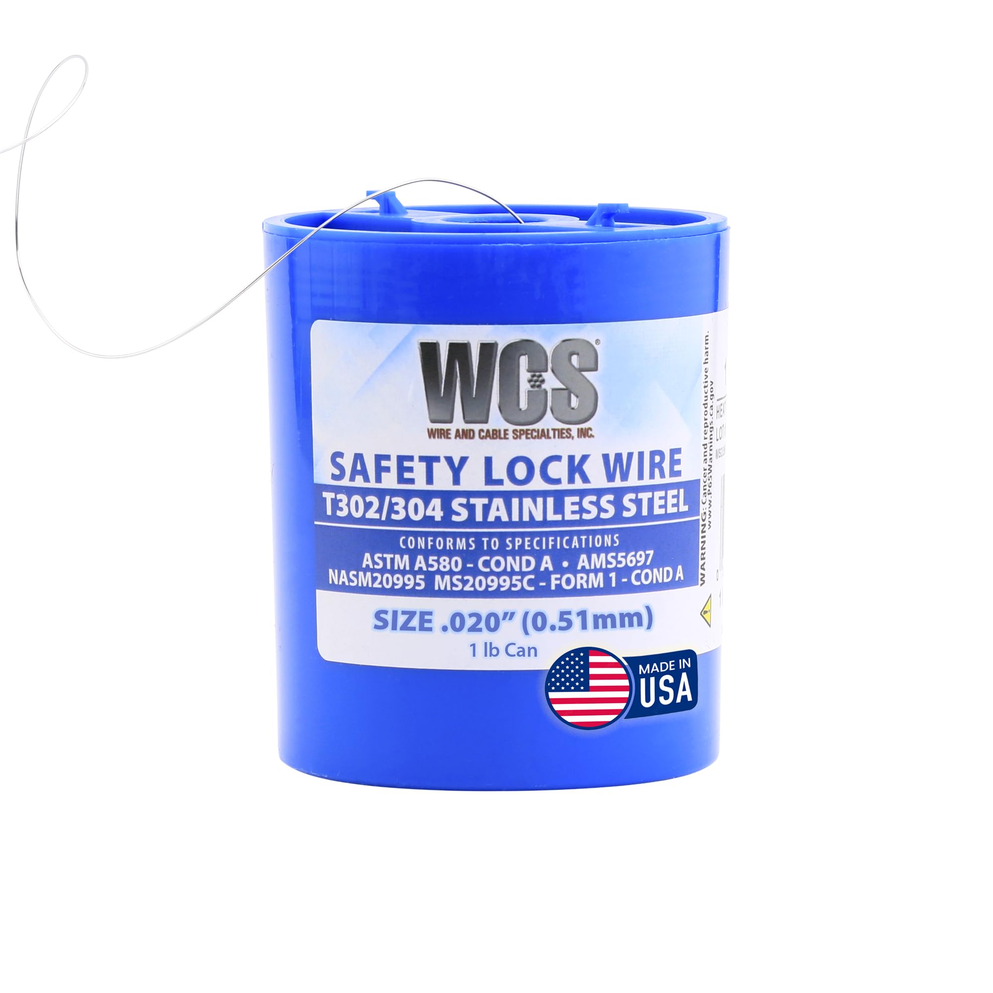 The Wire and Cable Specialties MC0200-1#D Safety Lockwire offers approximately 925 feet of 0.51 mm thick, polished 302/304 stainless steel wire designed for safety-critical applications. Certified to NASM20995 and ASTM A580 standards, this aerospace-grade lockwire features a convenient screw-on lid and belt clip for portability, making it ideal for securing parts exposed to vibration across various industries.