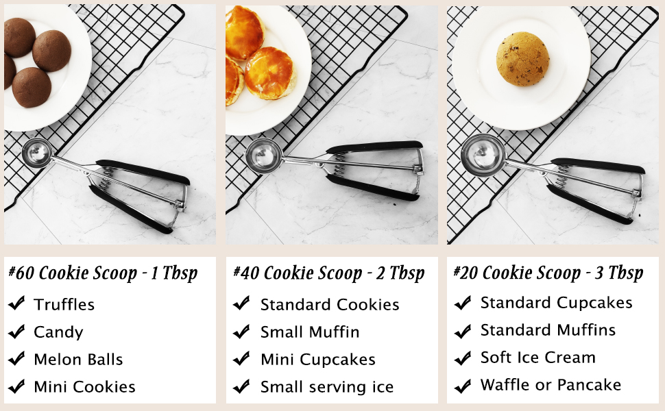 - BAKE LIKE A PRO - Create perfectly sized cookies every time with our #60, #40, and #20 scoops.