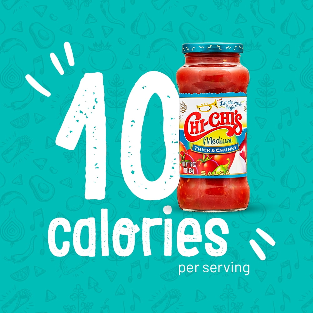 Liven up your next meal with the irresistible flavor of CHI-CHI’S Restaurant Style Salsa Medium. It has a medium spice for those who appreciate a jolt of jalapeño heat and authentic Mexican flavor. Whether you’re using it to top off your beef fajitas or just as an easy dip with chips for a snack, CHI-CHI’S family of salsas are música for your mouth! CHI-CHI'S is a trademark of Hormel Foods, LLC. Use it to top nachos, tacos, fajitas, or burgers Shake well. Refrigerate after opening 0g trans fats per serving 10 calories per serving Let The Fiesta Begin!