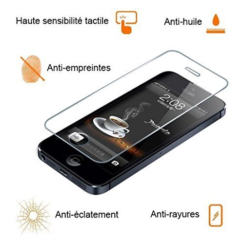 Think the quality net you® & # X2714; Screen Protectors for iPhone 5 | 5S | 5 °C & # X2714; Tempered glass film, Premium Shock Proof and break & # X2714; Anti Fingerprint, greasy & # X2714; rounded edges & # X2714; Maximum hardness 9H High Definition & # X2714; 99% Protect your Apple iPhone 5 | 5S | 5 °C with one of our high quality tempered glass screen protector Perfectly adapted to the shape of the Apple iPhone 5 | 5S | 5 °C Easy to put on and can be removed without leaving dépots Brand new and high quality. Scratch proof, wipe clean. The package includes: & # X2714; Pack of wipes & # X2714; 1 x Anti-dust & # X2714; 1 very high quality tempered glass & # X2714; Specially designed rigid packaging to reduce the chance of tip breakage