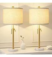 This modern set of 2 gold table lamps features adjustable heights from 56 to 76 cm, anchored by sturdy 6-inch marble bases and topped with elegant white linen shades. Each lamp includes a pull chain switch for easy control and comes with two 3000K LED bulbs, delivering warm, energy-efficient lighting ideal for bedrooms, living rooms, or offices. Designed for quick assembly and lasting style, these lamps blend polished metal and natural stone for a sophisticated, versatile lighting solution.