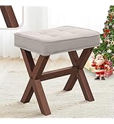 The COSTASKF Vanity Stool combines solid rubberwood legs with a breathable, multi-layer sponge cushion upholstered in gray linen fabric. Supporting up to 400lb, it offers durable comfort with easy assembly and low-maintenance care, making it an ideal modern accent for bedrooms or entryways.