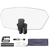 The Justech Universal Motorcycle Windshield is a clip-on adjustable wind deflector made from durable ABS material, designed to reduce wind noise and helmet buffeting. Measuring 11 by 5.12 inches, it fits universally across major motorcycle brands and installs easily without modifications, enhancing rider comfort and style with a sleek smoke finish.