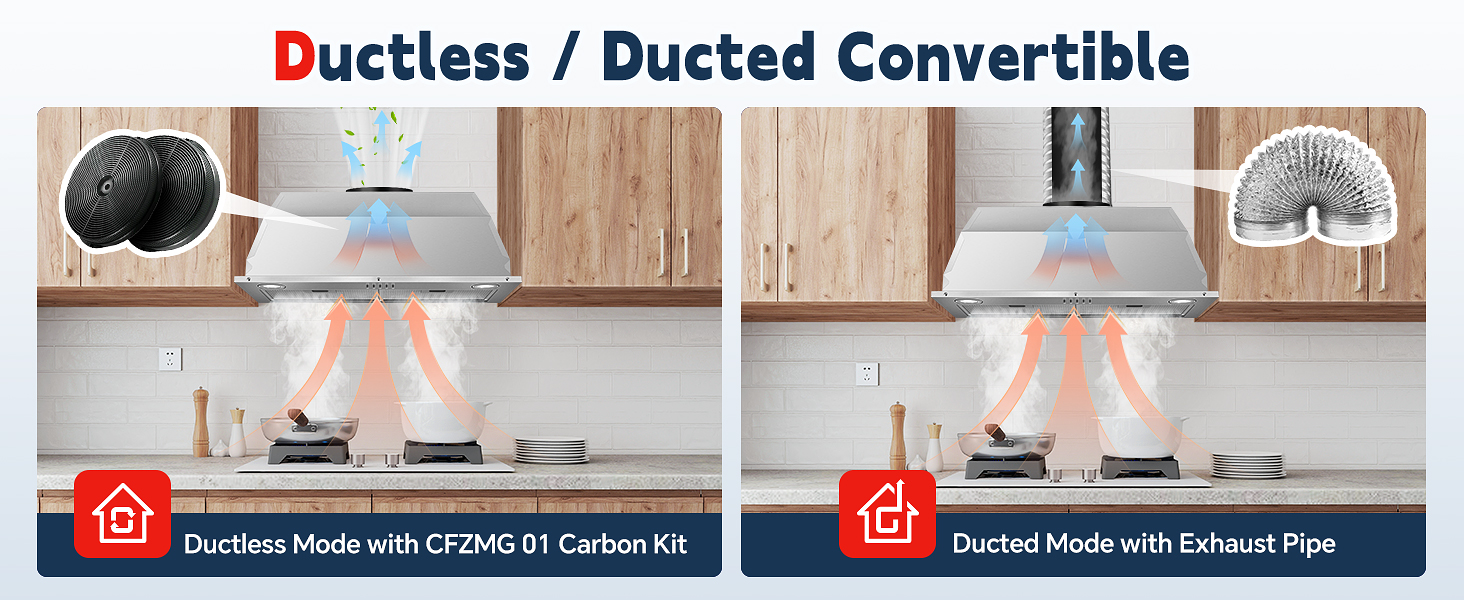 | Special Features | 3 Fan Speed, 600 CFM Suction, Aluminum Mesh Filters, Ductless/Ducted Convertible, LED Lighting |