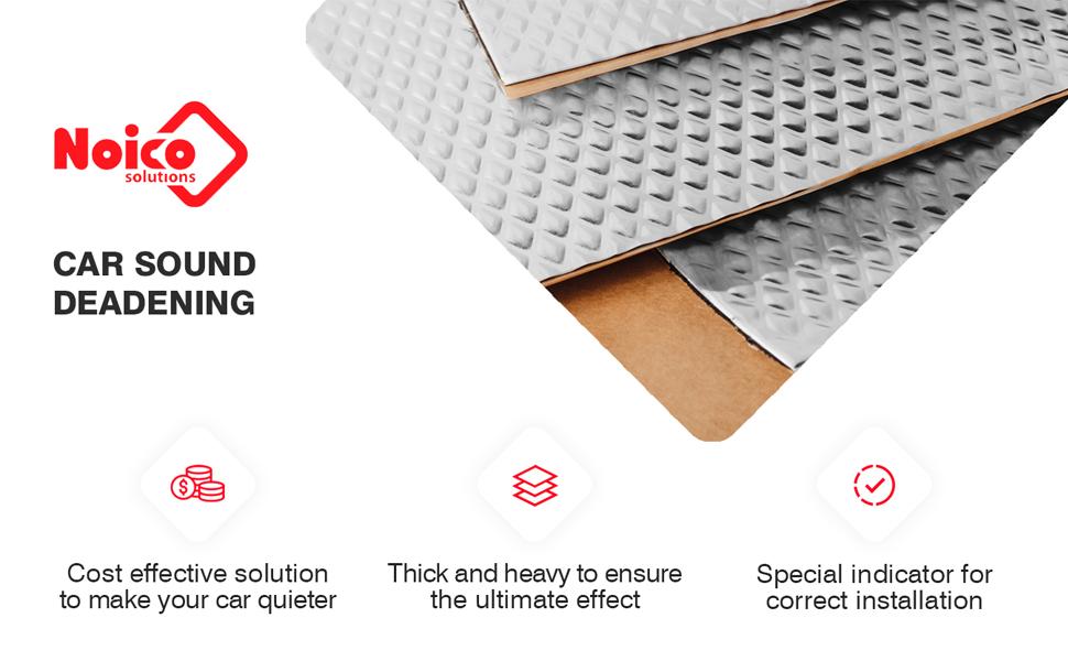 Noico 80 mil 10 sqft sound deadening mat features a thick, 2mm butyl and foil construction that provides 1.5 times better noise insulation than standard 50 mil mats. Its self-adhesive backing and unique foil embossing indicator ensure easy, professional-grade DIY installation. Weighing 0.7 pounds per square foot, this full-weight automotive sound deadener covers 10 square feet in manageable sheets, delivering superior vibration dampening and audio noise insulation for a quieter, more comfortable driving experience.