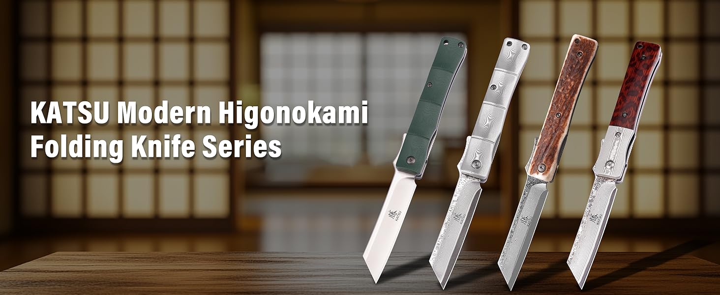 INITIAL REVIEW AFTER 24 HRS:THIS KNIFE IS JUST AMAZING! ! ! INCREDIBLE ENGINEERING, SUPERB CRAFTSMANSHIP, QUALITY MATERIALS AND BEYOND AN EXCELLENT VALUE. Katsu is a new emerging superstar that deserves a detailed review, is outstanding for low to mid range budgets and it's value is well beyond it's MSRP. I have quite a few folders, but I just wanted something that wasn't like any of my other knives with a Japanese flair and this perfectly fit my current prefs. This knife is very classy and will be a perfect gentleman's carry. It arrived extremely quickly - just two days to Hawai'i, it was razor sharp out of it's box and deployed very nicely using my thumb or index finger. With only 24 hrs of receiving this beauty, it's quality quickly placed it up there with higher end folders like Cold Steel, CRKT, Kershaw, SOG, Mcustas and others IMO. Once Katsu really becomes known - I'm guessing their prices may quickly increase or at least they should. Not that I'm not pleased with paying under a hundred dollars for it, but this $90 model (including tax and shpg) could very easily sell for $200 - $300 once the word gets out. I mean. . . REALLY - Solid Genuine Japanese Folded Steel ('Damascus') for under $90. I have two Japanese Folded Steel folders, two other Damascus folders and a San Mai Tactical that were each, well over $100 and the 'Damascus' patterning on Katsu's Modernized Higo Warikomi is more than acceptible - very similar to my Mcusta. I'll update this review after I'm better acquainted with this new pup in a few days.UPDATED AFTER 100 HRS:KATSU'S HIGO STYLE WARIKOMI - ICHIBAN DESU! WITH THIS PREVIOUSLY UNKNOWN COMPANY - I took a chance and I'm beyond glad that I did. Japanese materials and styling with it's unique Higonokami style deployment mechanism greatly intrigued me. I bought the KATSU (roughly translated: Victory) Titanium Carbon Fiber VG-10 FOLDER about a week ago and it quickly became my favorite piece. I liked that knife sooo much that I decided that I needed to get this All Japanese Folded Steel ('Damascus') Model sooner than I had planned. I was going to EDC the TiCF Model three months before getting another model. That decision quickly changed after just three days of getting acquainted with my first piece. This precision engineered knife deserves a comprehensive review.I AM ABSOLUTELY & IRREVOCABLY BLOWN AWAY BY THE QUALITY OF THIS AMAZING FOLDER! IT IS DEFINITELY WORTH MUCH MORE THAN IT'S MSRP. After nearly 100 hours of getting acquainted with this Katsu, I've decided that it's value is just "MORE"! In fact, everything about this Japanese Folded Steel "Damascus" Warikomi Baby Beast is MUCH MORE than I expected. There is a difference between San Mai (sandwiched-like layering) vs. Warikomi (taco-like layering) where the outer layers are folded over the spine of the blade. The blade's spine apparently doesn't reveal the VG10 core as it does on the tang / Higo mechanism of the blade. My first attempt at this cool deployment mechanism went very smoothly without any hitches. I can see myself playing with my new tool / toy for many years to come - absolutely no BS or hype. It's a gorgeous, fully functional and a fun cutting tool / fidgeter!When I first saw the Katsu about a week ago, I was drawn to it's unique Higo style deployment mechanism with it's modified drop point reverse tanto blade shape. Whoever originally came up with the idea of merging Eastern and Western influences by adding a liner lock to the traditional Higonokami is brilliant. I've been selectively collecting knives for more than 25 years now and I keep asking myself the same question. . . why another knife? Simple answer - excellently engineered with fine craftsmanship, genuine quality materials, VERY cool styling, reasonably priced along with more than 400 good reviews. Near Zero Tolerance Specs! For my tastes, this knife is near perfect! I really love 'Damascus' steel, sleek innovative designs, superb engineering and well executed craftsmanship. This knife is certainly all of that and more. In it's traditional styling, this Classy Higo is a beautiful example of Warikomi Japanese Folded Steel ('Damascus') that 'tacos' a very sharp VG10 core.This knife arrived extremely quickly - just two days to Hawai'i. It was razor sharp out of it's box, but the deployment mech was very tight. That was easily fixed. I became very quickly addicted to fidgeting with my new knife as soon as I got it. After about 500 flips and a very lite coat of Tsubaki / Camellia Oil, the pivot wore just enough to rectify the fresh out of box stiffness. At a 1000 flips, it now operates as smooth as silk. I've found this issue in several of my $200+ knives. The genuine leather sheath and Hessian cloth sack that came with it will be useful whenever this folder is not in use, but it's new permanent home, at home or work, will normally be in my pocket. These are folders that I'll be proud to whip out whenever the need arises, even if it's just to open a letter or box, but it is very capable of doing much more and at it's price point, it won't bother me at all to use them often.Whether Katsu Knives were made in Japan or China makes no difference to me depending on specifically "where" in China. This incredible piece of engineered craftsmanship is a high quality piece. It does have the Japanese Kanji for Katsu laser engraved on the blade without any indication of the Country of Origin. Because of the way the engraving was done on the folds of the steel and how the lines shine where the engraving is, it's tell-tale that the verbage isn't just lightly laser etched like many other reputable companies mark their pieces. On some of my knives, in an effort to regain a mirror finish, I've tried to hand buff the blade and the verbage is too often, easily removed. According to Katsu's Website, they openly state that their KITCHEN knives are made in Yangjiang - China's world renowned Knife Capitol, similar to what Seki City is in Japan. So again, IMO, so what