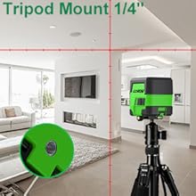 When I read that this was going to self level, I thought it would be what I needed. I needed a line on the wall that was level and the surface I'd place this on wasn't, so with that description of it I assumed it would correct what I needed. Sadly, the line on the wall was at an angle like the surface.I then went on trying to build something out of boxes and a side table to make a surface high enough for this to sit on that would give me a line across the wall.You can see the line clearly. It then projects marks at certain intervals on the vertical line. I was hoping for more help than what it can do. Maybe you can buy a tripod that would help this?So if you are able to place this at the same height as the line you want it to project, this will be perfect for you. If like me you need it to do a little more than that, then this isn't for you