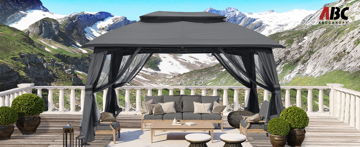 The ABCCANOPY 10x13 Outdoor Gazebo is a robust and stylish addition to any outdoor space, featuring a durable steel frame, waterproof and UV-resistant fabric, and removable mosquito netting for a comfortable and insect-free environment. Perfect for gatherings, this gazebo offers ample coverage and versatile decor options, making it an ideal choice for your backyard, garden, or patio.