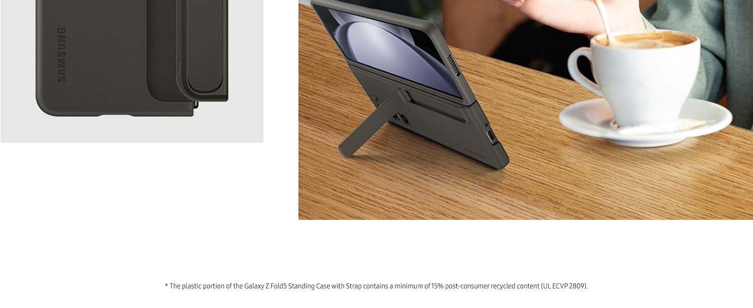 The SAMSUNG Galaxy Z Fold5 Standing Phone Case with Strap is a sleek and eco-conscious protective cover designed for hands-free viewing. With a built-in kickstand and a smooth silicone finish, it offers both style and functionality, ensuring your Galaxy Z Fold5 is safe and ready for any occasion.