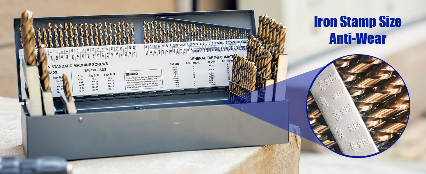 JEFE HEX 115 PCS HSS Cobalt Drill Bit Set, Twist Jobber Drill Bits Set, 135-Degree Split Point, Fractional 1/16"-1/2", Letter A - Z, Wire #1 - #60 with Metal Indexed Storage Case