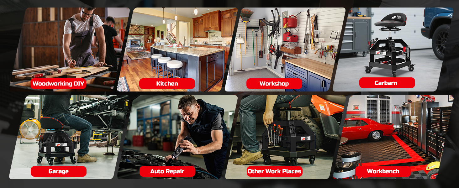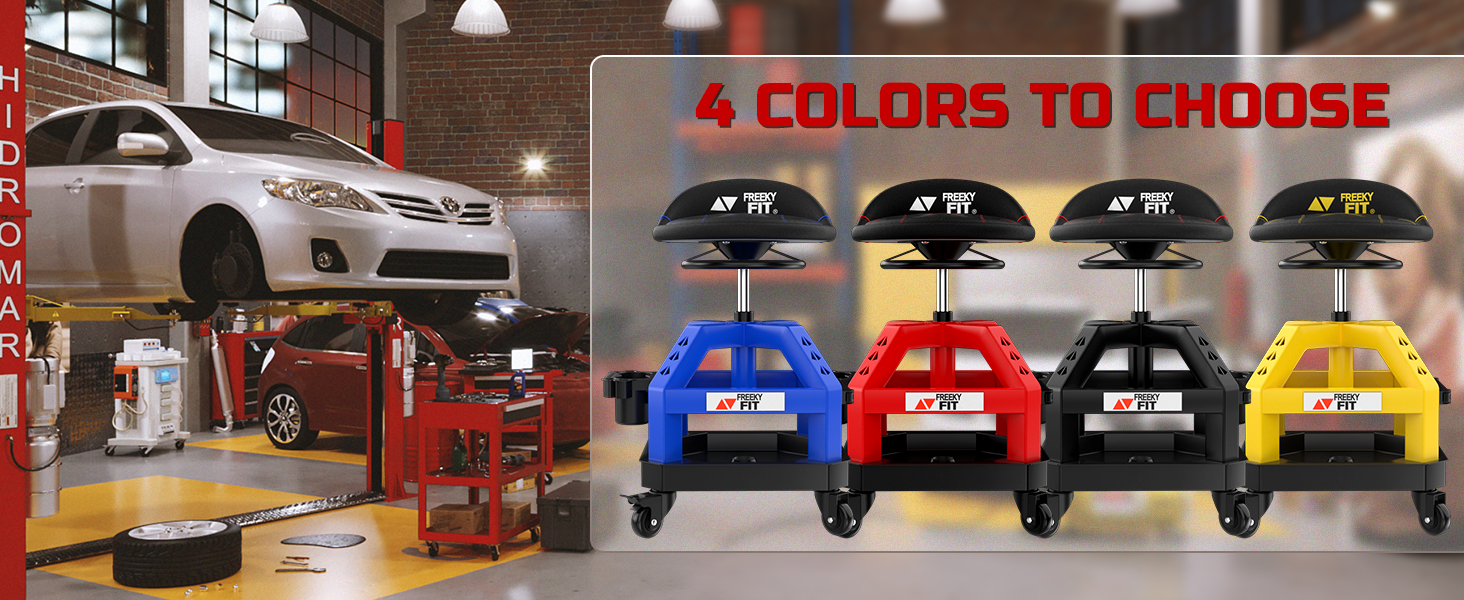 The FreekyFit DO02-B Rolling Shop Stool combines heavy-duty durability with ergonomic comfort and smart storage. Featuring a steel frame supporting up to 330 lbs, 360° swivel with smooth casters, adjustable height, and dual tool trays, it’s engineered for professionals who demand efficiency and ease in their garage or workshop.