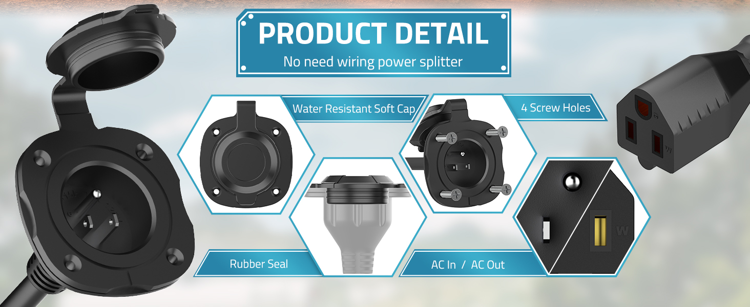 PAULINN 15 Amp 125V AC Power Inlet Port Plug with 18" Integrated Extension Cord, NEMA 5-15 RV Flanged Inlet with Waterproof Cover and Back, 2 Pole 3 Wire Power Plug for RV Truck Boat Generator