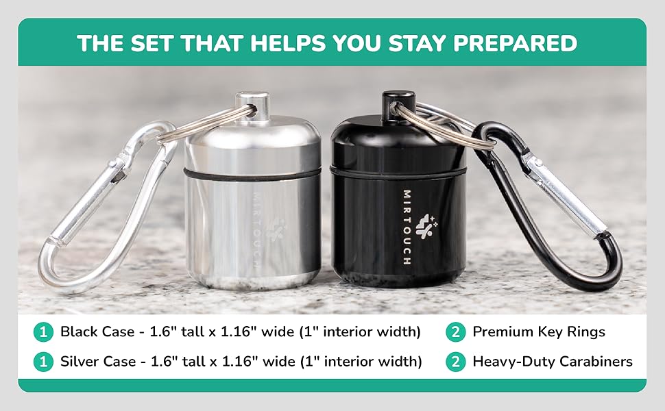 Pocket Glucose Tablet Container Designed for Round Glucose Tablets Water Proof Aluminim 2 Sets 1 Black 1 Silver with Matching Carabiners