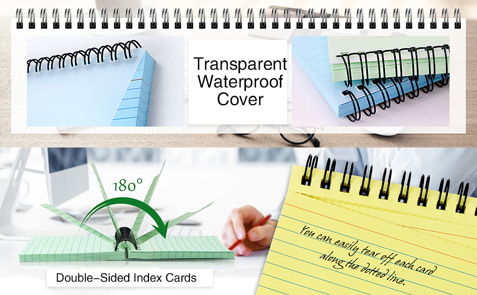 Joyzzz Revision Cards offer 200 thick, double-sided, ruled index cards in four vibrant colors, bound with a tearable spiral design and protected by waterproof covers. Ideal for professionals and students alike, these portable cards keep your notes organized, durable, and ready to impress wherever you go.