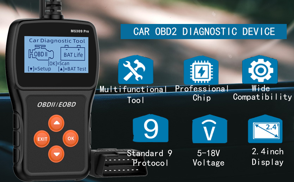 The MS309 Pro OBD2 Scanner is a professional-grade diagnostic tool that supports all 9 OBDII protocols, enabling full engine and system diagnostics across a wide range of vehicles. It features a 2.4-inch display for clear code reading, includes advanced battery voltage testing to prevent failures, and offers quick reset and error code clearing functions. Compact and portable, it’s designed for car owners who demand fast, reliable insights to maintain peak vehicle performance.