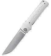 I don't often go out of my way to write product reviews, but this knife is worth it. This knife is an absolute UNIT. It's beefy, but in a good way. Like those old Buck knives from the 60s. Heavy, but not too heavy. Really sturdy feeling knife. It just feels good to hold. It's beautiful to look at and I find myself doing so often. The handle is a masterpiece of design. It ticks all my boxes for a knife. It has a textured grip with rounded edges. There are cut aways right where the fings wrap around the handle that make it even more comfortable to hold. It has a very quick and crisp snap open with zero blade wobble. The design of the blade is unique. All the edge work and added details are fantastic. I CANNOT believe this knife is only $32. This knife is a steal at this price point.