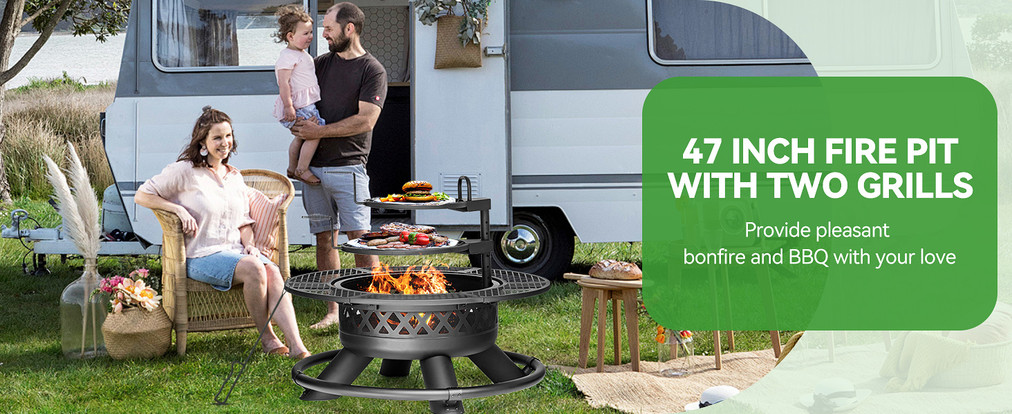 47 Inch Outdoor Wood Burning Fire Pit With 2 Grills | Desertcart Argentina