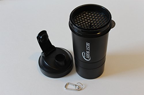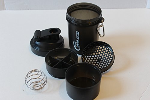 System Includes: (1) 16-oz cup 500ML, (1) Strain n' Flo pc (1) Protein cup, (1) pill tray, (1) WhirlyBall wire whisk Features: 16 oz capacity cup Secure screw on lid Tight n' Turn system connects jars to cup Pill organizer locks into base of cup. Protein Powder container Large drink/pour spout WhirlyBall wire whisk BPA Free Fits in most car cup holders Carabiner snap "D" hook key-ring Wide mouth makes it EASY to add ingredients Easy to Clean - (Hand wash is recommended to maintain bottle structure and logo longevity)